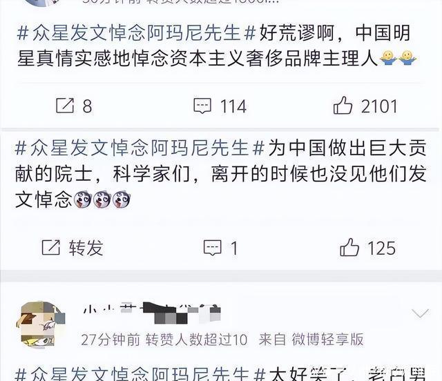 没人说明星不能悼念阿玛尼,但选日子也得讲点良心吧?抗战胜利纪念日刚过去,就哭一个卖衣服的外国人,这像话吗?