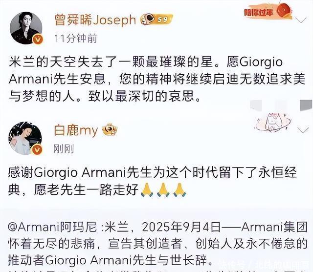 明星们都在哭阿玛尼去世了!但昨天抗战胜利纪念日,这些人却冷冷清清没几个人发声。这两天咱们老百姓看得真清楚,有些人心里到底装着谁? 昨天晚上十二点后,好多明星突然发长文说阿玛尼走了,说得那叫一个伤心啊!胡歌写了好长一段,说什么在威尼斯见过面,感觉特别难过。