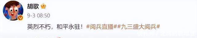 就拿胡歌来说,9月3日只发了八个字:“英烈不朽,和平永驻“。再看看其他明星,要么不发,要么就是复制粘贴几个字,感觉就是交作业。