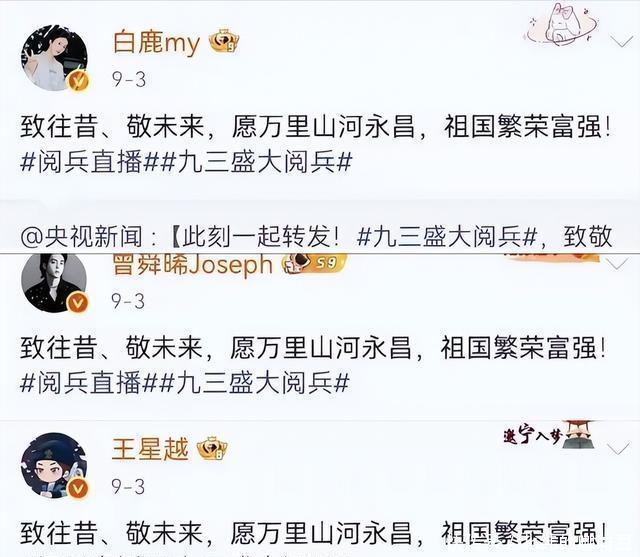 可同样是这些明星,9月3日抗战胜利纪念日写了啥?