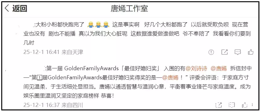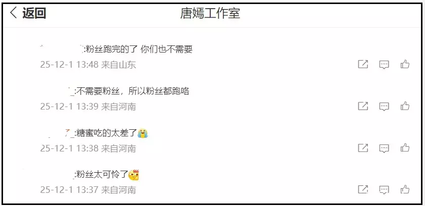 因为12月没有具体行程,唐嫣工作室的评论区都沦陷了,放眼望去都是质疑之声,大批粉丝表示要脱粉。