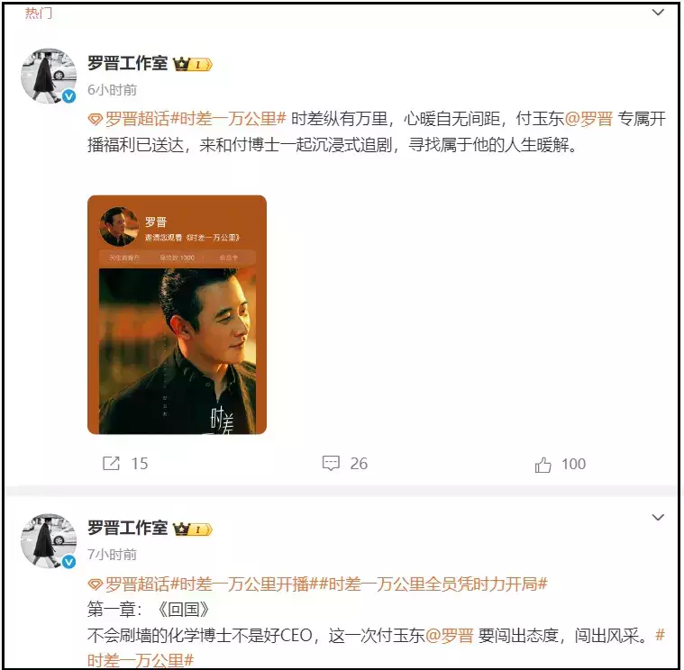 与此同时,罗晋工作室更换宣传版图,连发两条动态,都是为了宣传罗晋新剧。