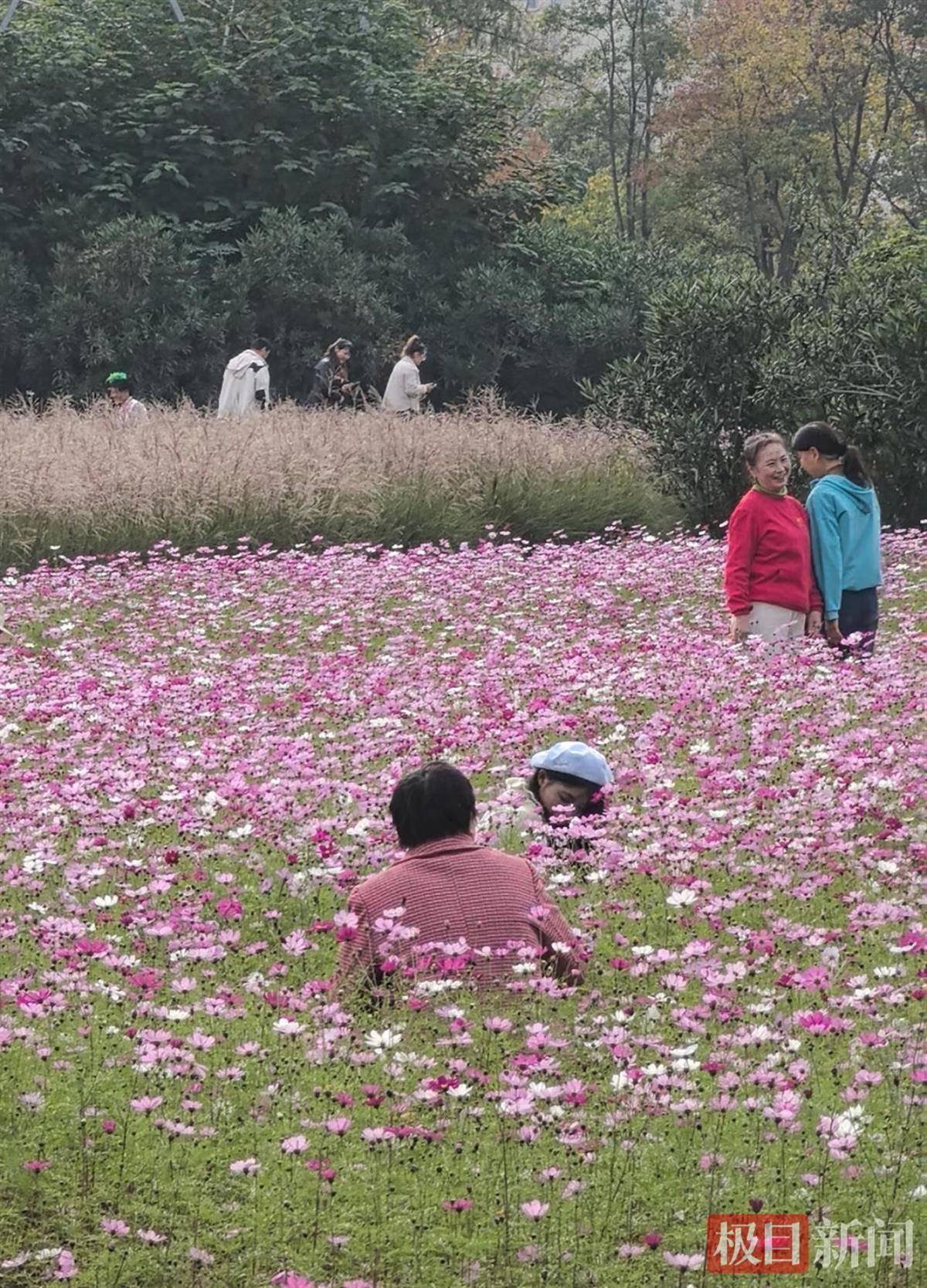 “快快,这里,这里拍照好看,你到这,我给你拍。”今年65岁的李阿姨用手机摆好架势招呼着同伴。另一旁,五六个阿姨手搭着肩,站成一排,一张标准的多人游客照又诞生了,旁边甚至有些架着专业的三脚架设备,举着相机的朋友们,就为了抓住这一年只有一次的浪漫花海。
