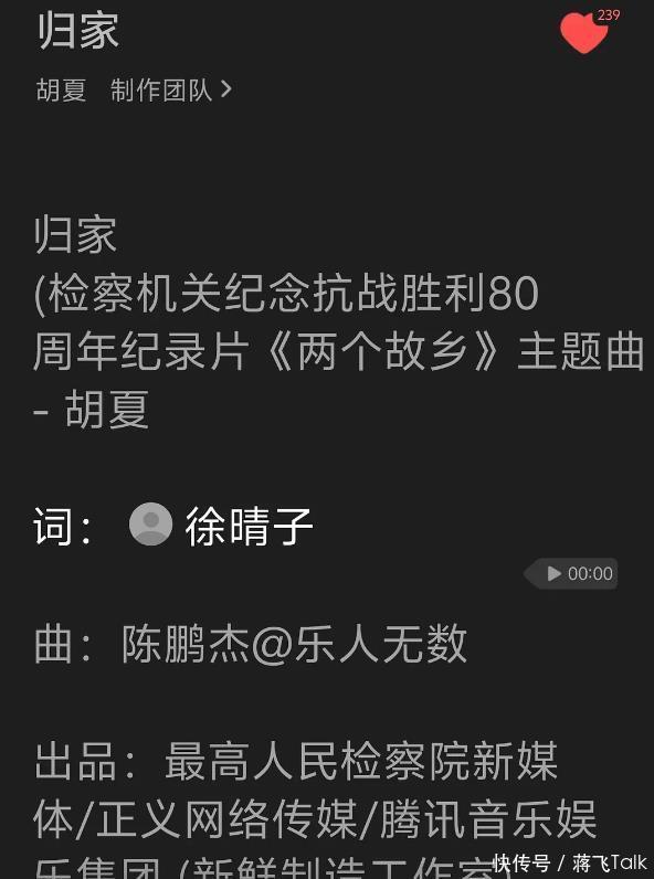 而歌手胡夏及其团队则制作了歌曲《归家》,这首歌是纪念抗战胜利80周年纪录片《两个故乡》的主题曲。