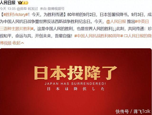 80年前的今天,日本正式签署投降书。从此之后,9月3日被定为中国人民抗战既世界反法西斯胜利纪念日,中国也会在9月3日举行盛大阅兵。而在9月2日,官媒发布了一条用中英日三语种主题片《胜利Victory!今天,为胜利传递》,纪念抗战胜利80周年。视频发出后仅仅几个小时,就收到超百万转发量。而娱乐圈也有超多明星也纷纷响应,传递这份“胜利”。来看看都有哪些明星呢? 首先是人任嘉伦、叶童和赵露思,三人分别转发官媒视频并留言。任嘉伦留言“铭记历史,缅怀先烈,弘扬抗战精神,中华民族奋勇前进”,叶童则称这是属于我们的胜利时刻,而赵露思超话则称,胜利不仅是历史的回响,也是我辈的担当,照亮未来的方向。