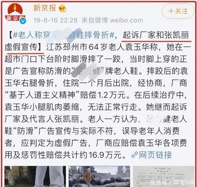 当时,她代言的老年鞋被曝存在严重质量问题,甚至有消费者因穿着该品牌鞋子摔倒骨折,事件发酵后,张凯丽一度被贴上负面标签,公众对她的信任度更是大幅下降。